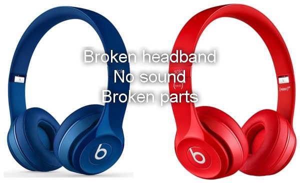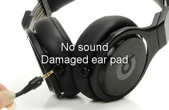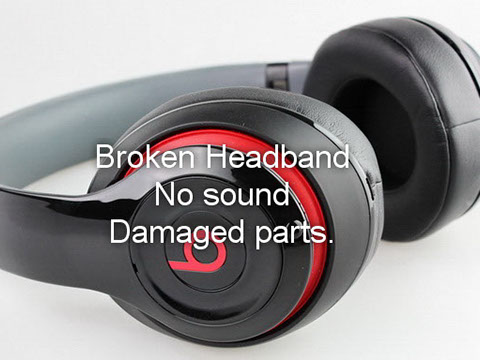 Don't turn on - No sound - Bad sound - Broken parts - Damaged jack - Corrosion damaged - Ear pad cushions - Noise cancellation problem - Damaged cable - Damaged battery - Broken headband -